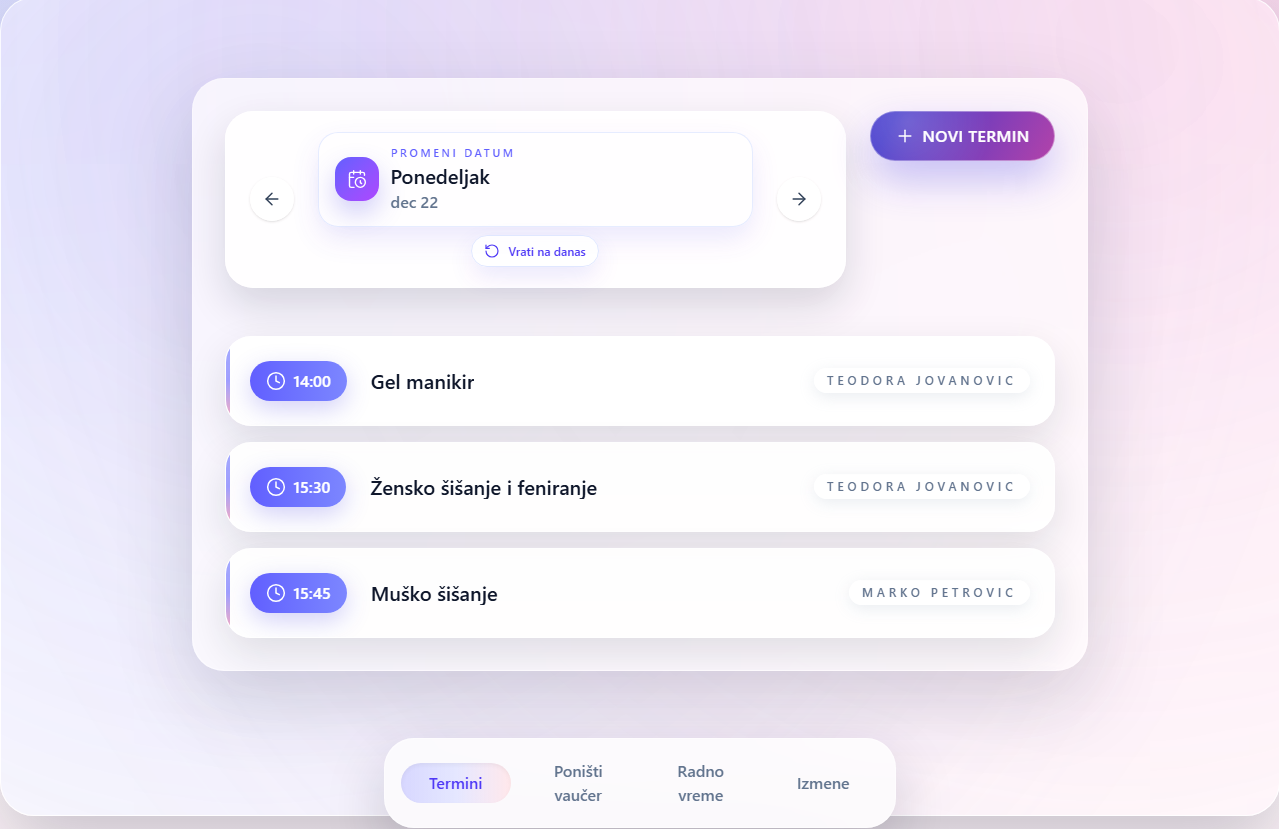 “Prestali smo da zakazujemo preko poruka; klijent samo tapne karticu i izabere termin.”